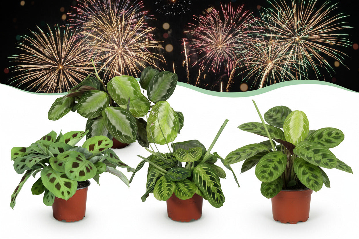 Green boutiQ - Zimmerpflanze - Marantha Silverband, Marantha Lemon Lime Marantha Kerchoveana - Gebetspflanze - Haustierfreundliche Pflanze - Grün - 3 Pflanzen - Topf 12cm - Höhe 25cm